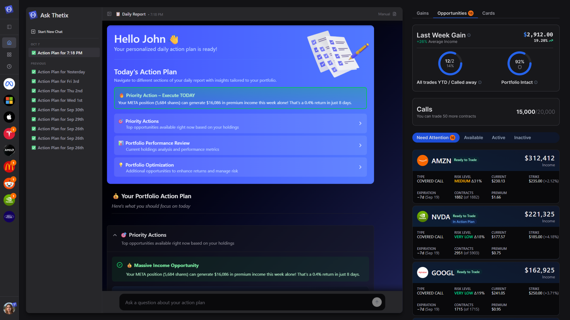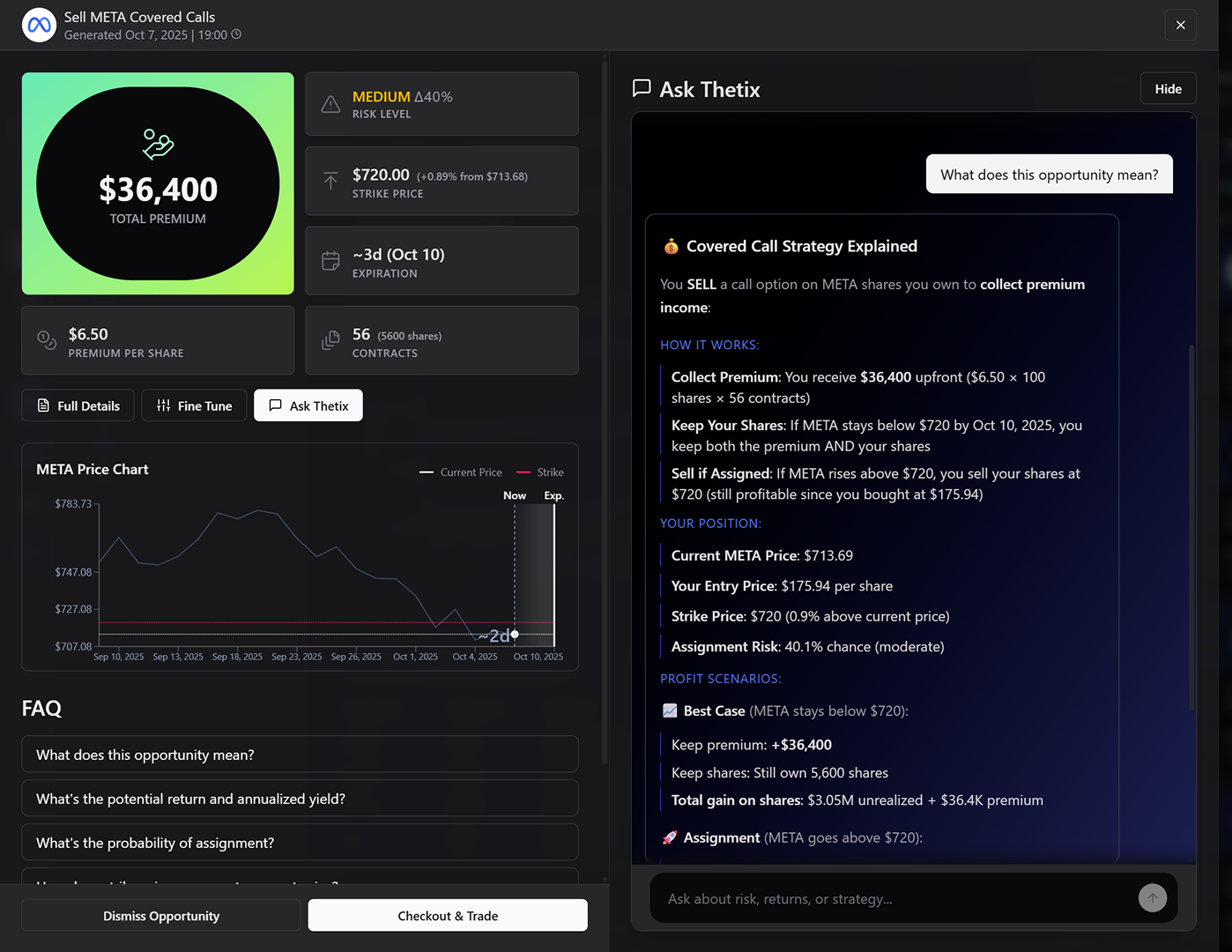Even in open beta, ThetaEdge helps investors identify covered-call opportunities, track performance, and communicate naturally with Thetix, the built-in AI co-pilot for smarter, faster decisions.